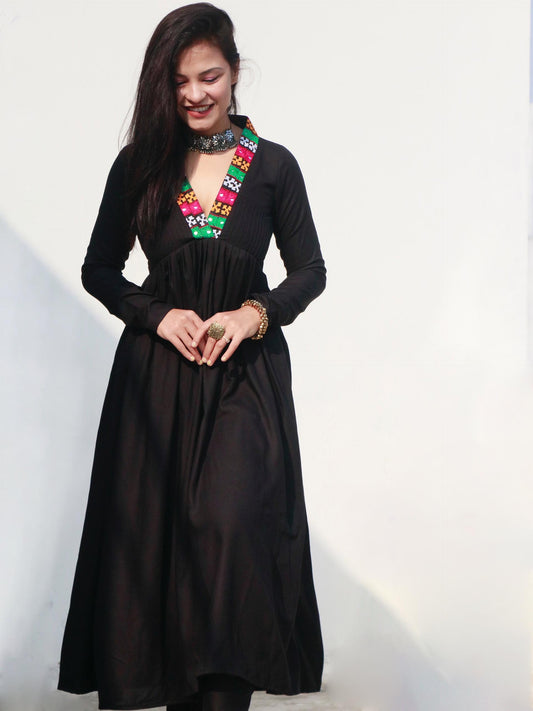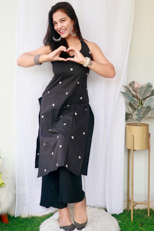 CHIC BLACK KUTCHI HAND WORK KURTA SET
