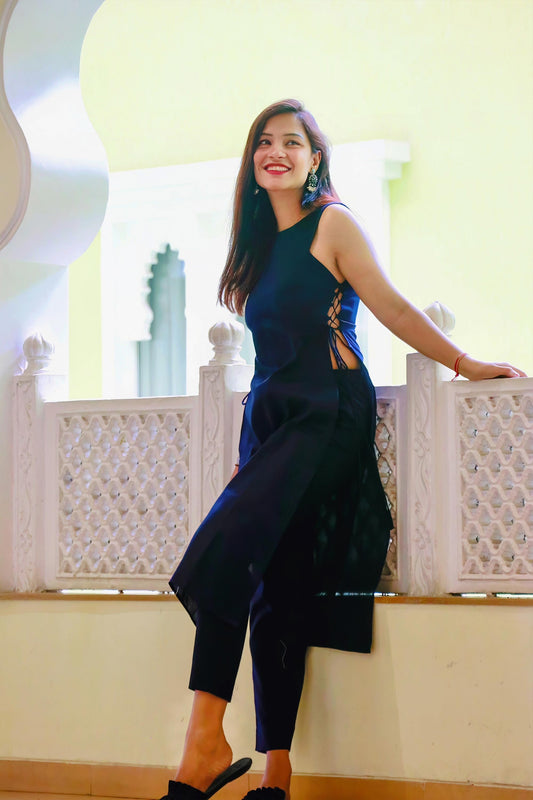 AABHA NAVY BLUE COTTON KURTA SET