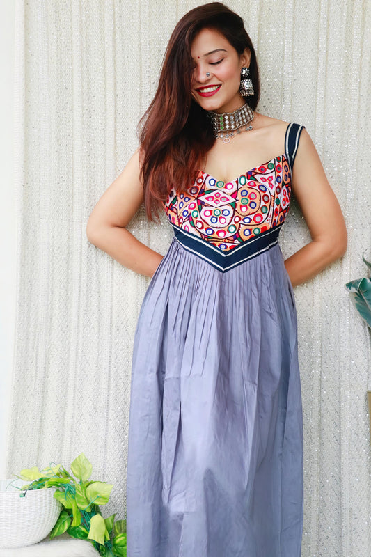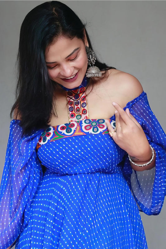 SANA BLUE GEORGETTE KUTCHI HANDWORK DRESS