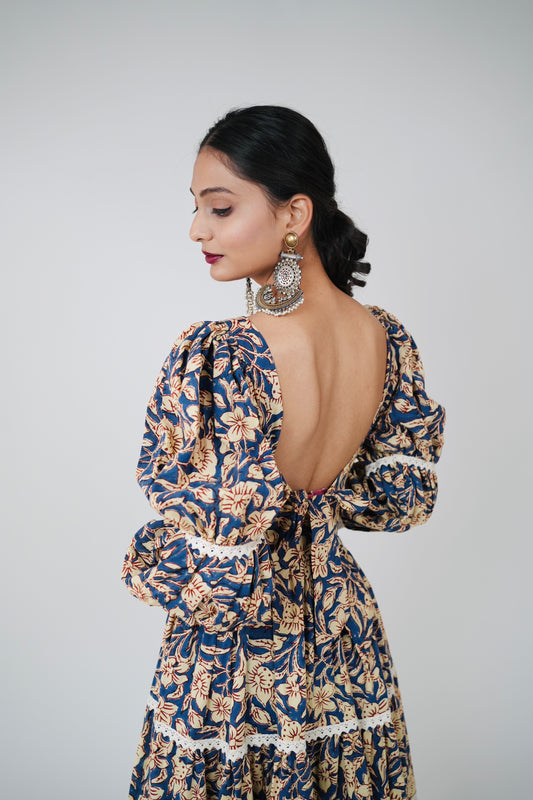 ASNOOR COTTON HANDBLOCK LAYERED DRESS