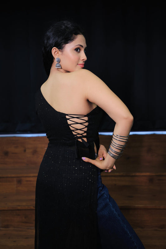 CHARLOTTE BLACK SEQUIN SLIT DRESS