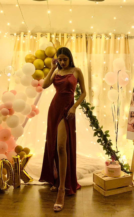 MEHR MAROON GARNET COWLNECKSLIT DRESS