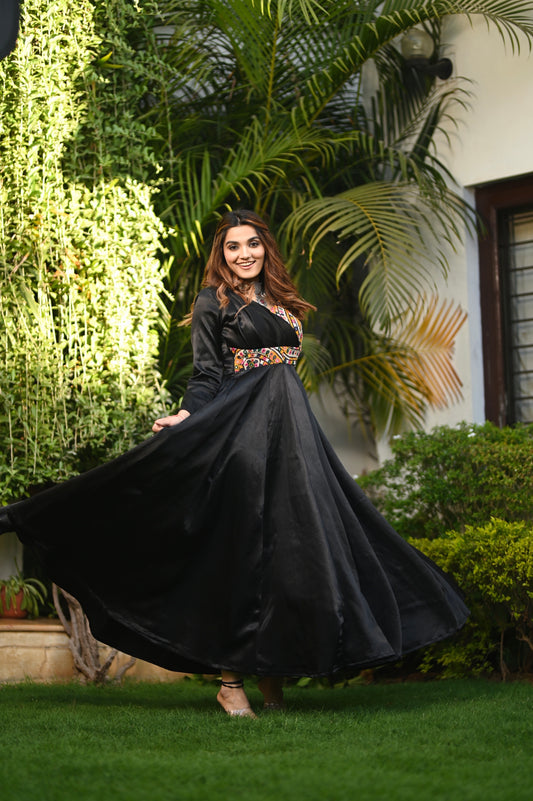 MAITHILI BLACK MASHRUSILK KUTCHI HANDWORK GOWN