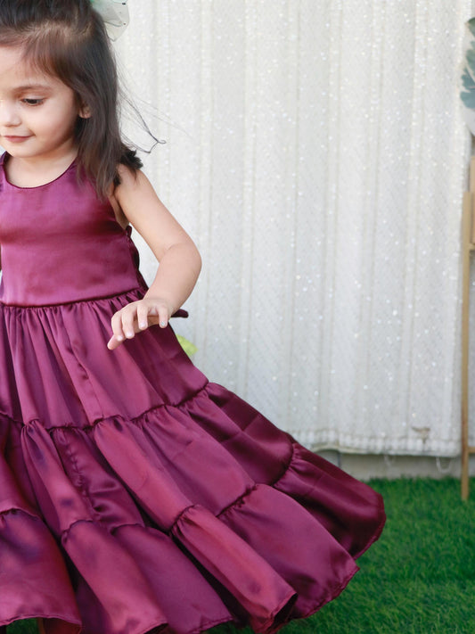 VIOLET SATIN LAYERED DRESS