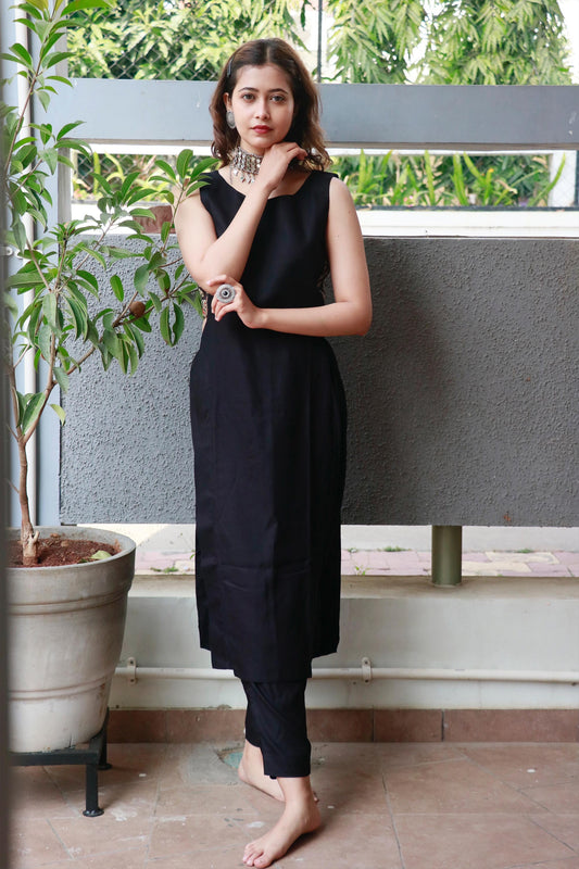 BLISS BLACK KUTCHI HANDWORK KURTA SET