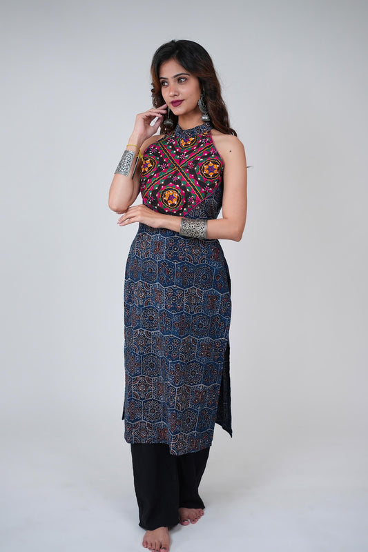 AJRAKH ANTIQUE KUTCHI HAND EMBROIDERY KURTA SET