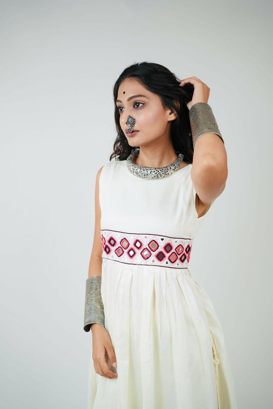 RANG RITI WHITE MIRROR WORK KURTA SET