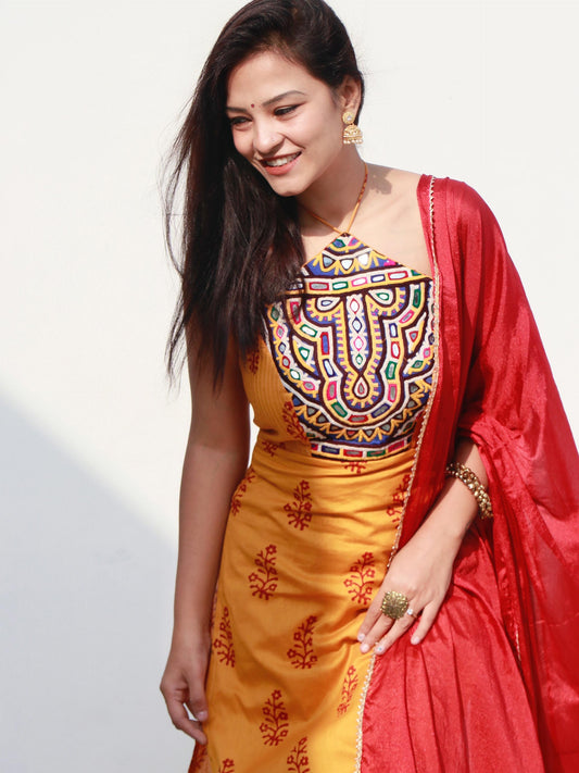 MEERA YELLOW KUTCHI HANDWROK KURTA SET