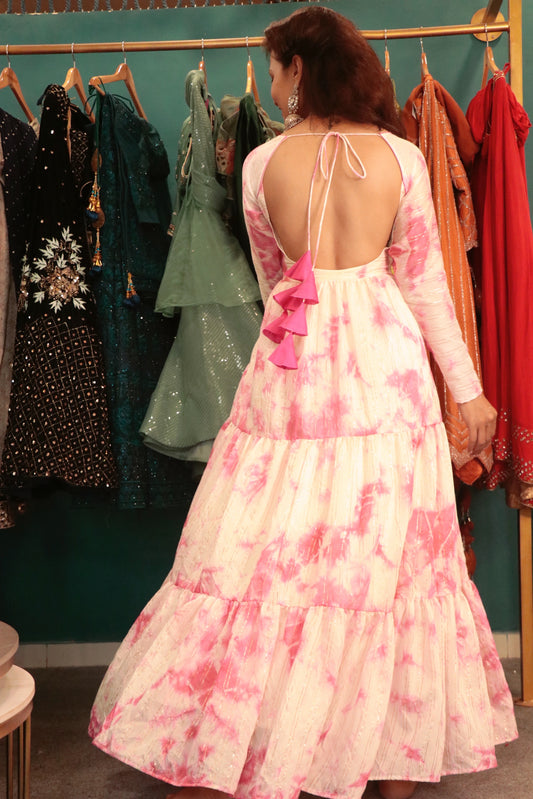 EVA TIE - DYE KUTCHI HANDWORK LAYERED DRESS