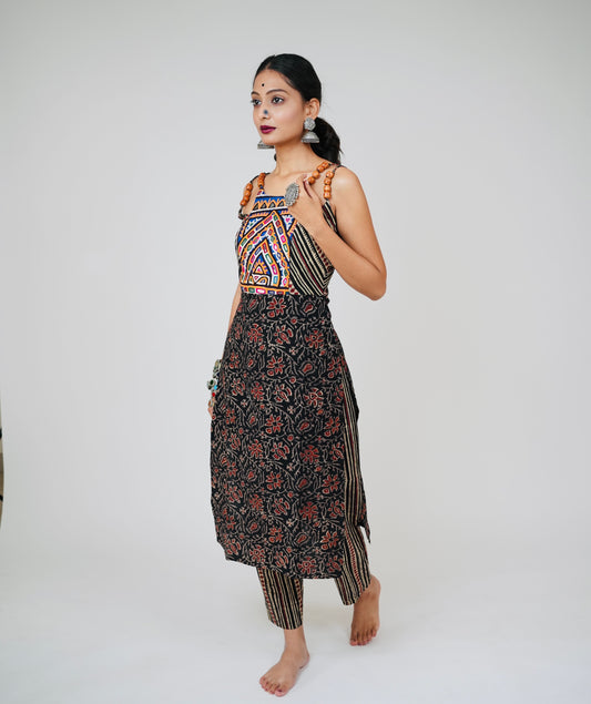 IKRA COTTON KUTCHI HAND WORK KURTA SET