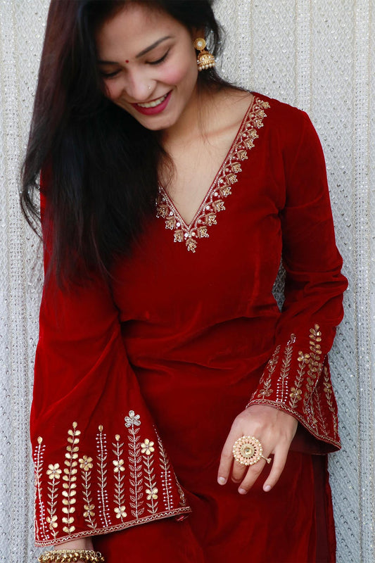 CHIC BLACK KUTCHI HAND WORK KURTA SET